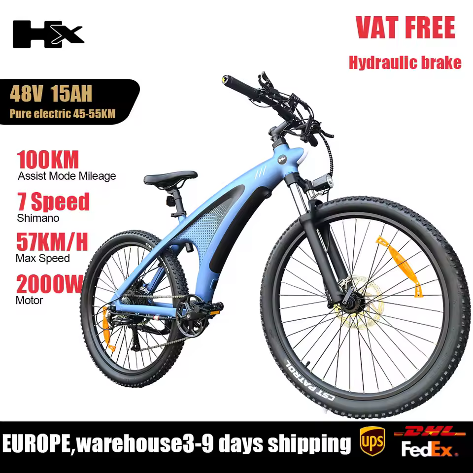 HX Q5 전기 자전거는 2000W 모터의 강력한 힘으로 어떤 언덕길도 평지처럼 주행 가능합니다. 날렵한 프레임과 튼튼한 타이어는 도심과 험한 지형 모두에서 안정적인 주행을 제공합니다.